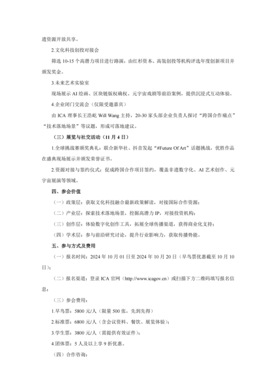 作为全球文化科技融合领域的标杆性活动,该活动是国内外文艺界、科技界与产业界深度对话的重要契机,不仅彰显了中国在推动文化数字化转型中的领导力,更体现了ICA以开放姿态整合全球资源的战略眼光,也是全球文化创新力量的一次集中展示。